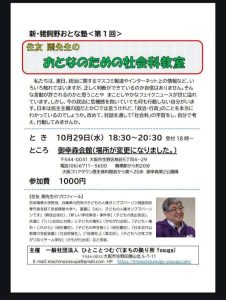 と き 10月29日(水) 18:30~20:30 受付18時~