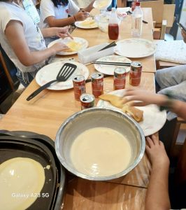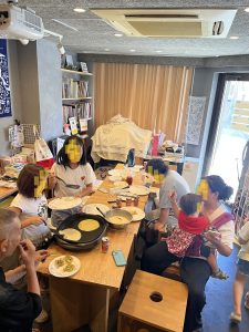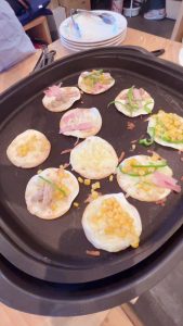 餃子の皮は小さくて扱いやすいのでみんな思い思いのトッピングを楽しんでしました。