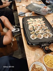 タコ焼き器の中に餃子の皮を入れて、ツナやとうもろこし、ハムなどいれてシュウマイぽく焼きました。